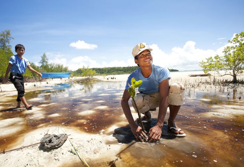 Sisyphusarbeit muss langfristig angelegt werden. Küstenschutz mit Mangrovenanbau in Kambodscha.
