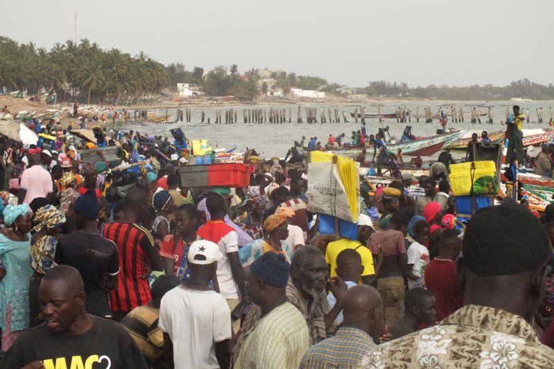 Vom Fischfang bis zur Fischverarbeitung sind 1,2 Millionen Senegalesen beschäftigt. Ein Fischmarkt im Senegal.